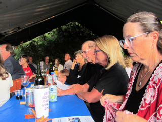 After the head table were piped in and took their places at the head table, the evening quickly got underway. Judge, Gerry Burmaster led the group in singing the American and Canadian National anthems, followed by toasts to the Office of the President and the Queen, and Cheryl Ritchie offered thanks for the meal and the opportunity to bring friends together.