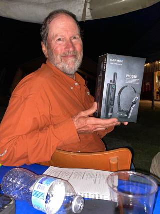 The 2022 National will be hosted by the Long Point Retriever Training Club in Port Rowan Ontario. More business, the Field Trial Committee will be Chairman / Chief Marshal Dennis Harwood, FT Chair Dave Thompson, Eastern Zone Darlene Broomhead, Ken Crosby and Western Zone Dan Danforth. Jane Thompson then presented the Judges with gifts from the host club. Apologies for the lack of photos for the rest of the evening as darkness set in and we conducted the rest of the evening by candlelight. COVID restrictions meant we had to remain outside. Thank goodness for good weather. Speaking of luck, Donald Martin won the Garmin Pro 550 e-collar that was donated by Garmin, one of our corporate sponsors.